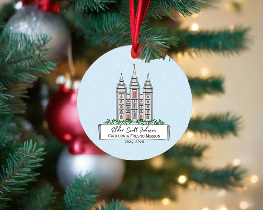 Personalized Missionary Christmas Ornament with Temple, Mission Area and Dates
