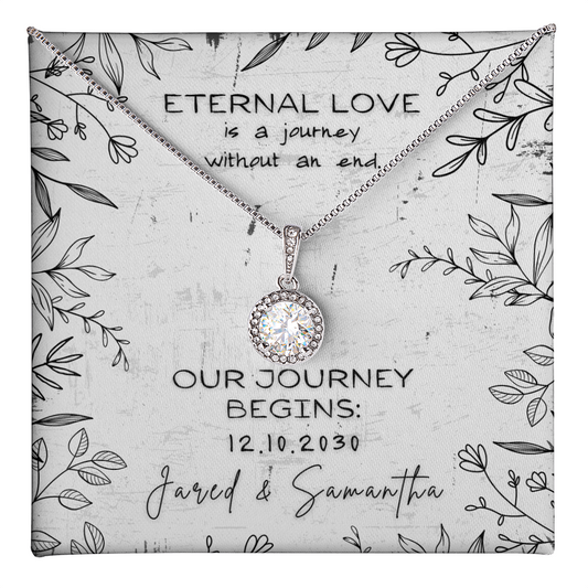 Personalized Eternal Love CZ Crystal, 14 K White Gold Necklace for Engagement, Wedding or Anniversary Gift