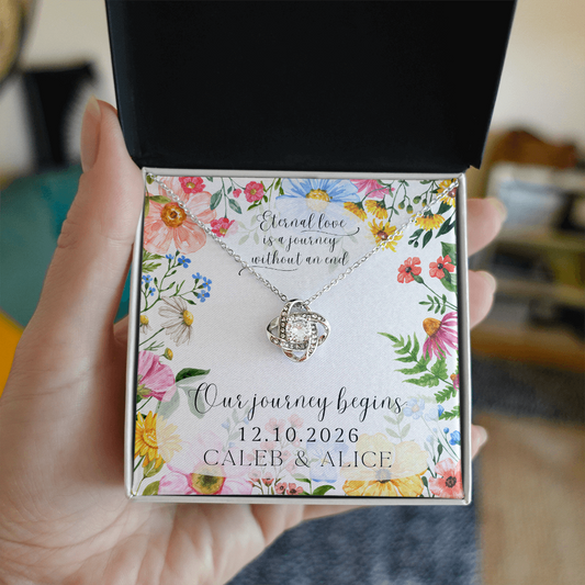 Personalized Eternity Love Knot Necklace with Cubic Zirconia and 14/18 K Gold Finish